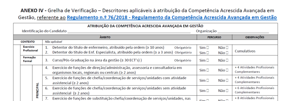 ANEXO IV - Grelha de Verificação – do Regulamento n.º 76/2018 - Regulamento da Competência Acrescida Avançada em Gestão